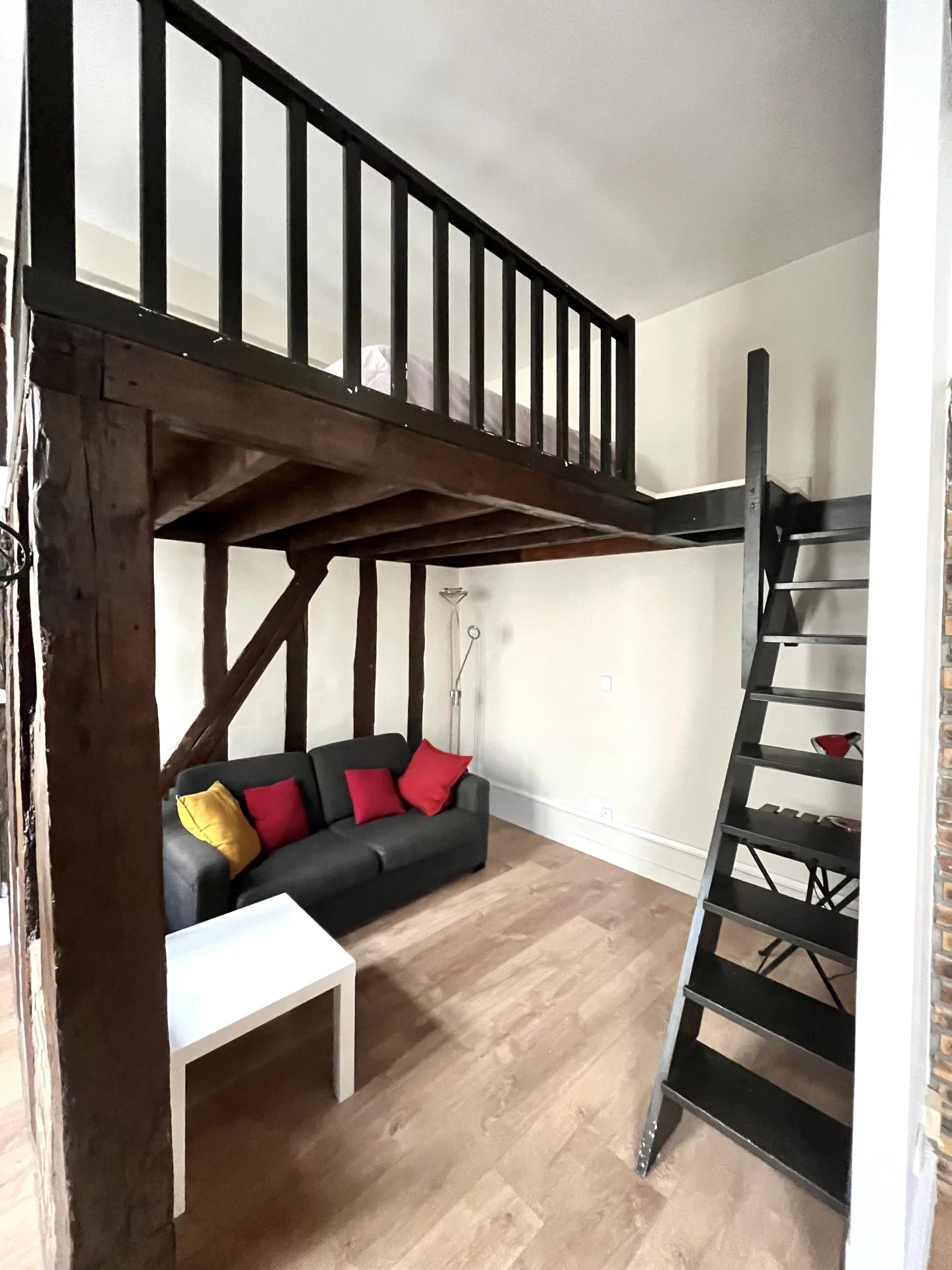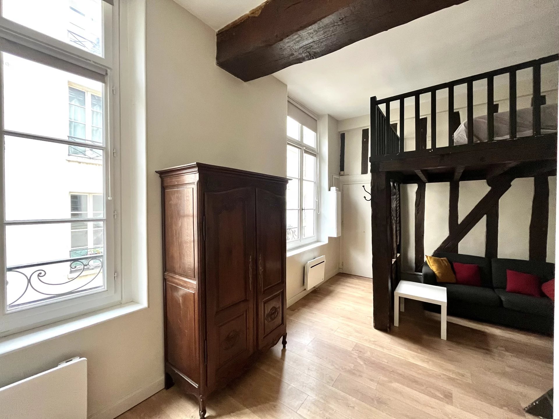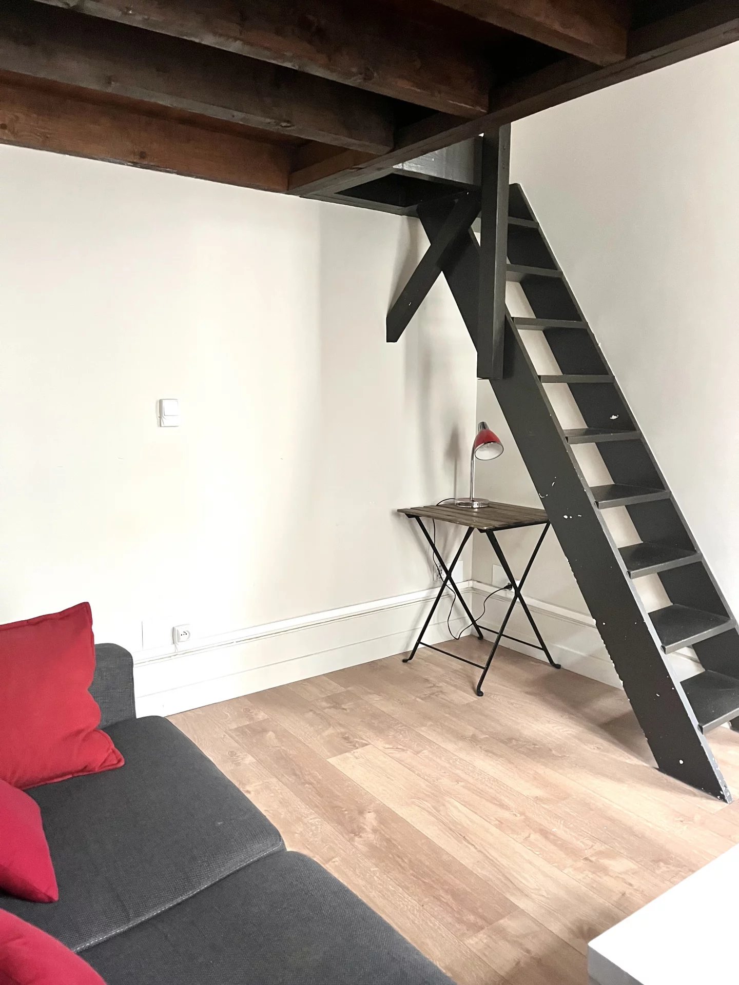 Rue des Rosiers, secteur rue Ferdinand Duval, au 2ème étage sans ascenseur d'un bel immeuble ancien, vaste et confortable studio de 35m² avec mezzanine de couchage réalisée sur mesure; exposition sud.