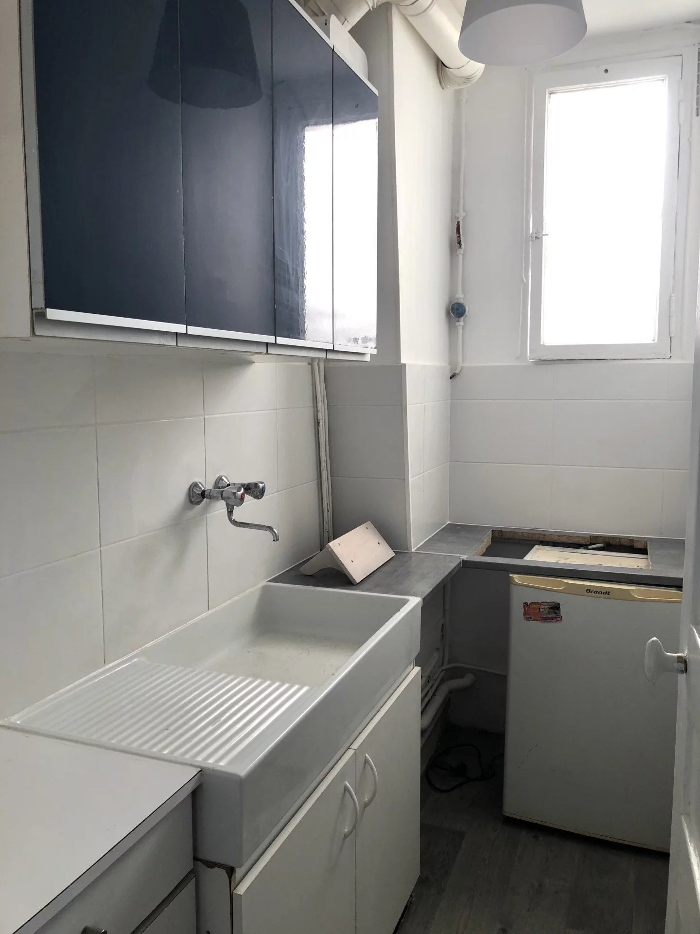 Il comprend actuellement une entrée, un salon, une cuisine séparée avec fenêtre, 2 chambres et une salle d'eau avec toilettes.