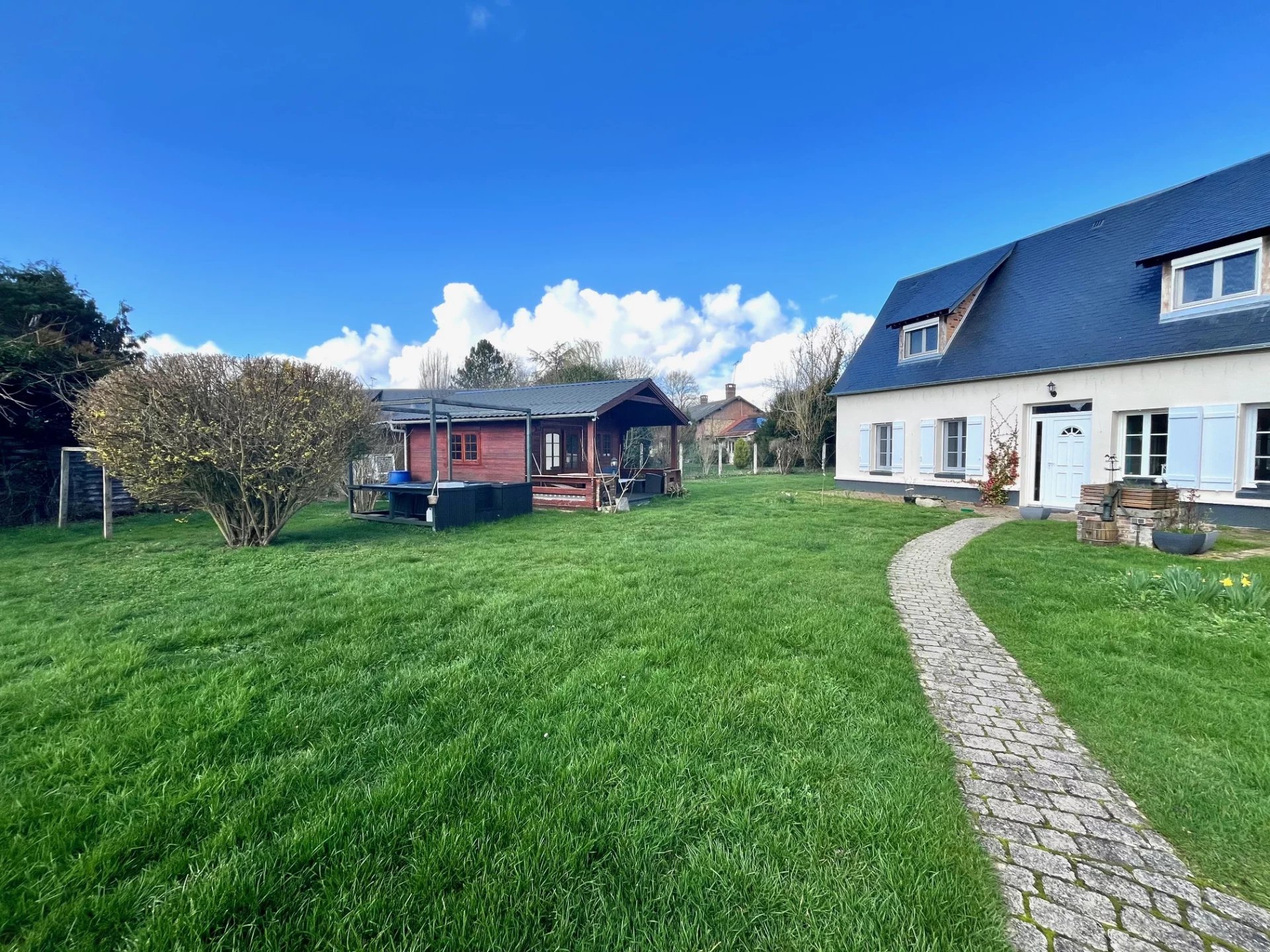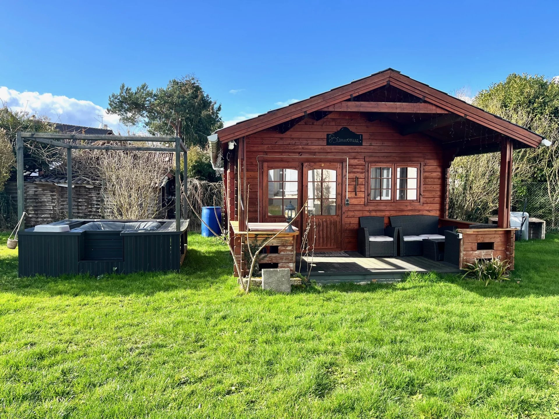 Un chalet en bois d'environ 19m², alimenté en eau et en électricité, avec cuisinette et toilettes est idéal pour accueillir la famille, les amis ou devenir un bureau indépendant de l'habitation principale.